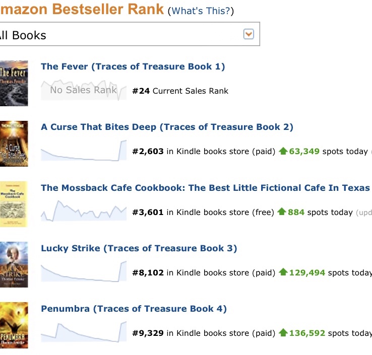 This weekend I have embarked upon my most aggressive marketing campaign ever … I paid for some outside promotion of my entire four-book series on Kindle. For me, it was not cheap, I have been fairly conservative in spending money on promotion. Spend a buck to make a buck, right?